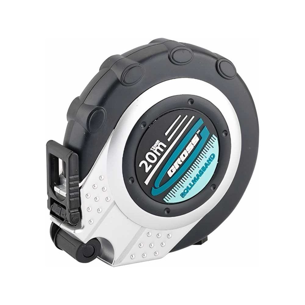 Геодезическая рулетка Gross Rollmassband 31251 в закрытом корпусе, с металлической лентой 20 м х 13 мм с нейлоновым покрытием, используется для определения расстояний и размеров различных объектов. Механизм заключен в двухкомпонентный закрытый корпус из пластика и термостойкой резины, поэтому рулетка устойчива к повреждениям в результате случайных ударов и падений. Комбинированный зацеп упрощает фиксацию измерительной ленты на измеряемой поверхности. Инструмент будет полезен на строительной площадке или земельном участке, а также при проведении обмеров внутри помещений.