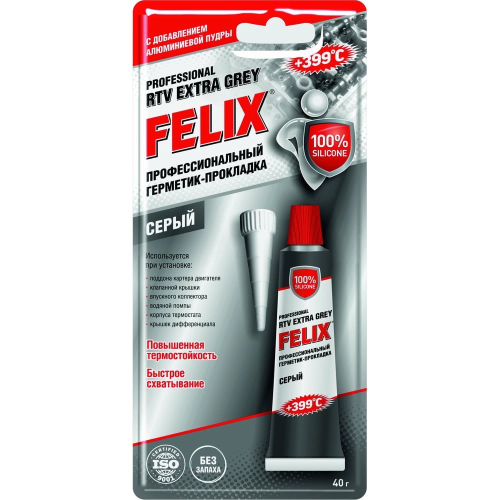 Герметик-прокладка FELIX (серый; 40 г) 411040109 применяется при установке: поддона картера двигателя, клапанной крышки, впускного коллектора, водяной помпы, корпуса термостата, крышек дифференциала. Заменяет любые заводские силиконовые прокладочные материалы, штатные твердые и резиновые прокладки. Способ применения Очистить и обезжирить поверхность. Проткнуть отверстие верхушкой крышки и надеть насадку. Нанести 2-4 мм герметика на одну поверхность. Оставив отверстия под крепежные болты, дать герметику распределиться по всей поверхности площади изделия перед соединением с другой поверхностью. Перед сборкой дать просохнуть 10 минут. Затем сжать обе склеиваемые детали, завинтив крепежные болты. После применения плотно закрыть тубу. Герметик полностью вулканизируется через 24 часа.