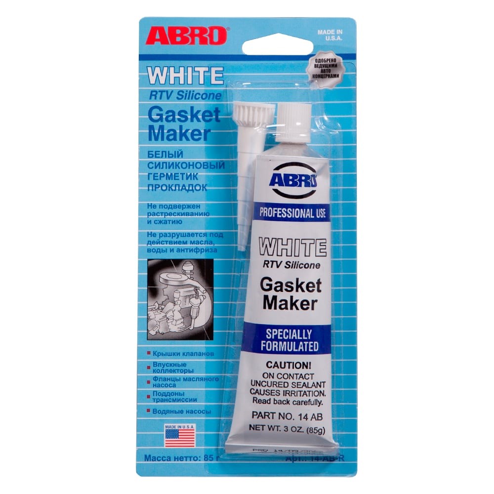 Герметик прокладок ABRO белый США 85 г 14-AB-RW принимает любую форму и успешно выдерживает сжатие, растяжение или сдвиг. Силиконовый состав предназначен для применения при температуре до +260°С. Продукт образует прочное соединение, устойчивое к большинству автомобильных жидкостей: масло, вода, антифриз (за исключением бензина).