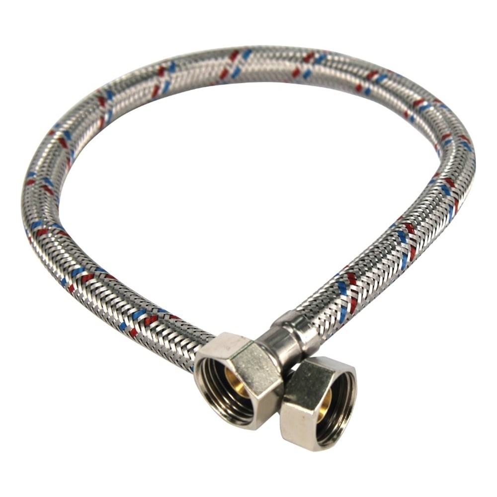 Подводка гибкая для воды ELKA с оплеткой из нержавеющей стали 1/2" х 50 см в/в, стальная гайка представляет собой резиновый шланг в металлической оплетке из нержавеющей стали и обладает высокими прочностными характеристиками. В процессе монтажа изделие можно сгибать и придавать необходимую форму. Подсоединяется гибкая подводка к точкам водозабора с помощью металлических накидной гайки и штуцера. Обеспечивает присоединение смывных бачков, смесителей, водонагревателей, стиральных и посудомоечных машин к трубопроводам холодного и горячего водоснабжения. Данное изделие отлично заменяет собой металлопластиковые трубы и за счет гибкости позволяет производить подключение к точкам водозабора в труднодоступных местах. Гибкая подводка для воды рассчитана на эксплуатацию при рабочем давлении 10 бар и температуре до +100°C.