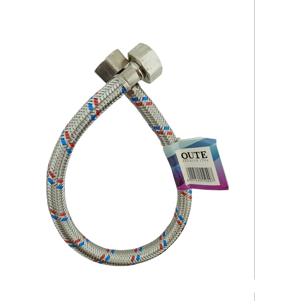 Гибкая подводка для воды OUTE 80 см, 1/2", гайка-гайка TP55-80 дополнительные характеристики: Материал шланга - нетоксичный каучук EPDM Материал оплетки, обжимной гильзы - нержавеющая сталь SUS 202 Материал накидной гайки - нержавеющая сталь