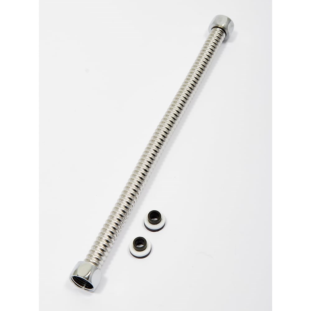 Гайка латунная хромированная ¾ - 2 шт. Труба гофрированная из нержавеющей стали ДУ20 Стопорное кольцо металлическое - 2 шт. Кольцо уплотнительное с бортиком - 2 шт. Прокладка фторопластовая - 2 шт.Области применения гибкой подводки из гофрированной нержавеющей стали: В системах водоснабжения, отопления, обвязки котельного оборудования и систем нагрева воды, В системах трубопроводов для кондиционеров, теплообменников и фанкойлов, В системах трубопроводов для ГСМ, В качестве металлорукавов для прокладки электропроводки, компьютерных сетей и прочих коммуникаций, В системах для отвода выхлопных газов. Преимущества гибкой подводки из нержавеющей стали: Простой и быстрый монтаж не требующий специальных навыков и оборудования, только ручной механический инструмент, что позволяет осуществлять монтаж специалисту любого уровня, а так же на объектах, где нет электричества. Неограниченный срок службы. Гибкость, позволяющая смонтировать систему любой сложности. Надежность соединения, рабочее давление от 6 до 12 бар в зависимости от диаметра. Устойчивость к гидроударам за счет своей гофрированной структуры, что исключает риск разрыва соединения. Устойчивость к отрицательным температурам, что позволяет применять подводку в системах смонтированных в помещениях с отрицательной температурой.