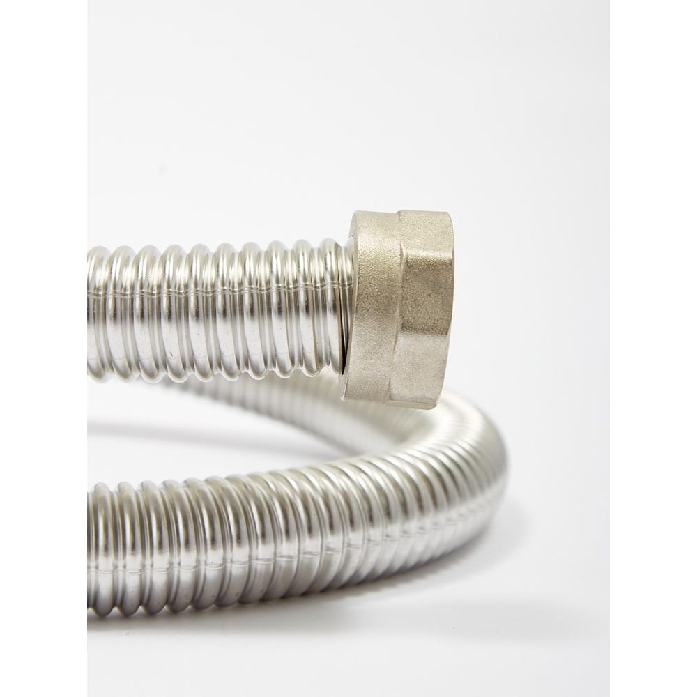 Гайка латунная никелированная 1 ½" - 2 шт. Труба гофрированная из нержавеющей стали ДУ32 Стопорное кольцо металлическое - 2 шт.Прокладка резиновая - 2 шт. Прокладка фторопластовая - 2 шт.Области применения гибкой подводки из гофрированной нержавеющей стали:в системах водоснабжения, отопления, обвязки котельного оборудования и систем нагрева водыв системах трубопроводов для кондиционеров, теплообменников и фанкойловв системах трубопроводов для ГСМв качестве металлорукавов для прокладки электропроводки, компьютерных сетей и прочих коммуникацийв системах для отвода выхлопных газовПреимущества гибкой подводки из нержавеющей стали:Простой и быстрый монтаж не требующий специальных навыков и оборудования, только ручной механический инструмент, что позволяет осуществлять монтаж специалисту любого уровня, а так же на объектах на которых нет электричестваНеограниченный срок службыГибкость позволяющая смонтировать систему любой сложностиНадежность соединения, рабочее давление от 6 до 16 бар в зависимости от диаметраУстойчивость к гидроударам за счет своей гофрированной структуры, что исключает риск разрыва соединенияУстойчивость к отрицательным температурам, что позволяет применять подводку в системах смонтированных в помещениях с отрицательной температурой.