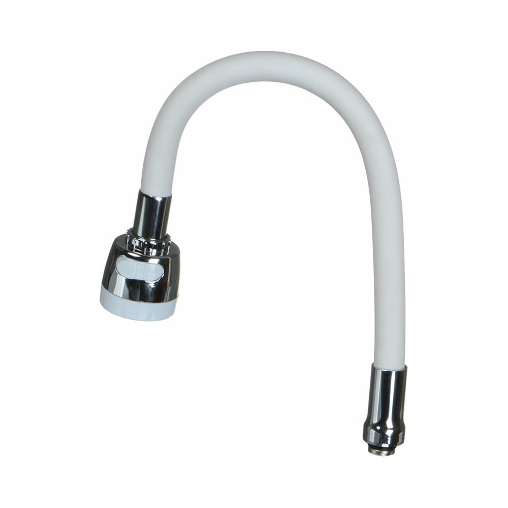 Излив гибкий LUXE с лейкой 2 режима белый 49см Melodia della vita MKP20655 Изливы в серии "Люкс" произведены на современном заводе и имеют высокое качество. Данные изливы оснащены латунными гайками, металлическими аэраторами. Изделия хорошо опрессованы, не имеют посторонних звуков при изменении формы, хорошо держат давление и более долговечны в эксплуатации, нежели изливы 1й цены в эконом-линейке. У излива с одной стороны лейка 2-режимная с кнопкой из пластика в цвет излива+хром, с другой латунная гайка подключения, стандарт 3/4". Внутри трубка из ПВХ высокого качества, оплетка из нержавеющей стали №201 толщиной 2,7мм и пищевой силикон снаружи. Упаковка - пакет ПВХ с подвесом. Края излива дополнительно упакованы в картон и зафиксированы резинками.