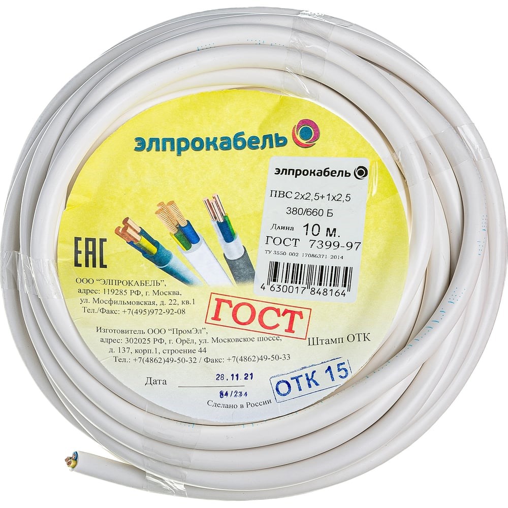 Провод ЭлПроКабель гибкий круглый ПВС 3х2,5 10м ГОСТ 4630017848164