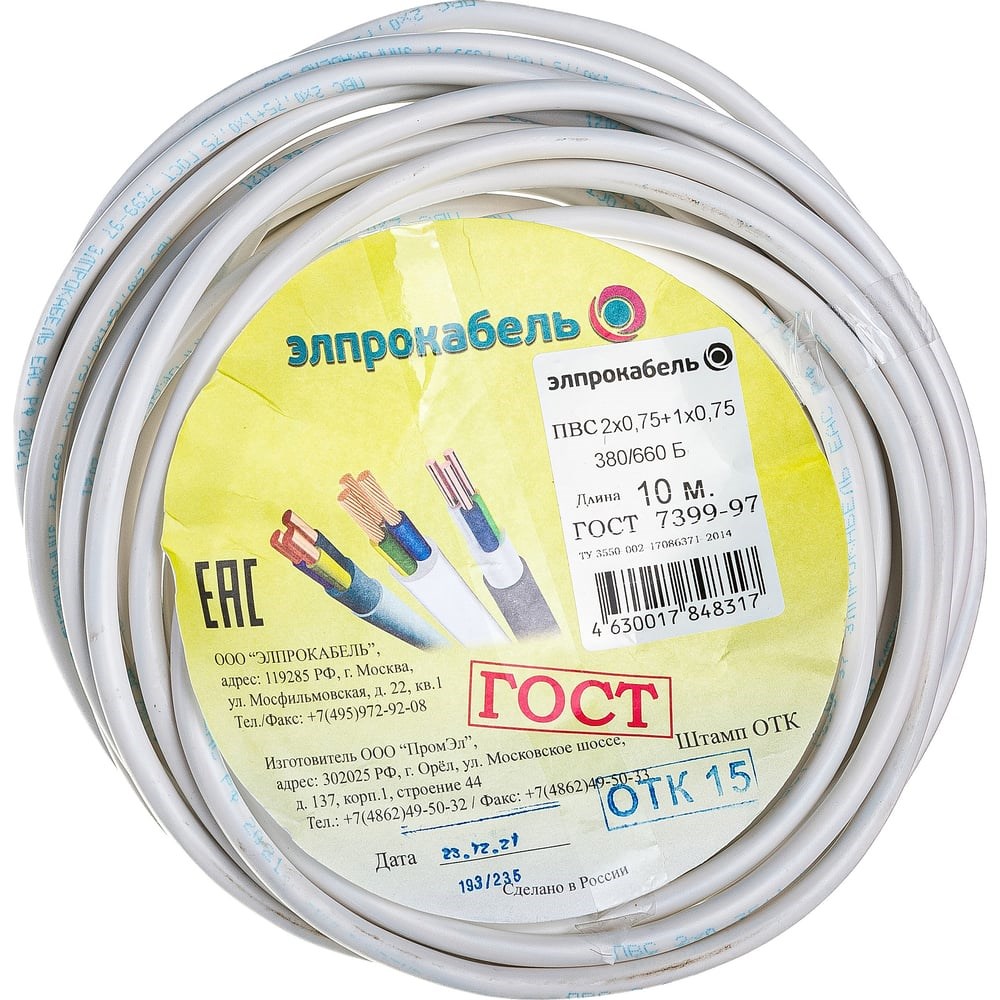 Провод ЭлПроКабель гибкий круглый ПВС 3х0,75 10м ГОСТ 4630017848317