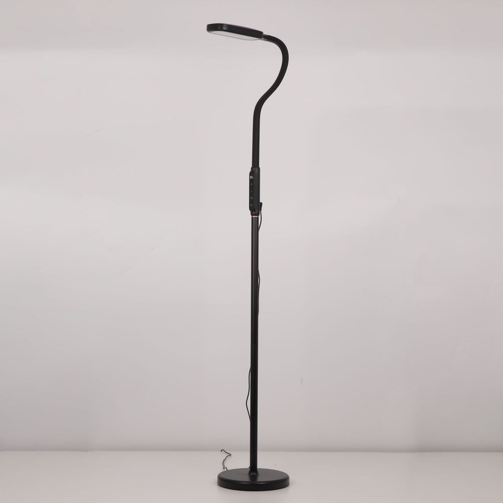 Светодиодный напольный торшер Citilux Марк CL804021 выполнен в современном стиле, цвет чёрный. Круглое основание светильника изготовлено из ударопрочного полимера. Стойка металлическая, состоит из трёх частей, которые соединяются между собой с помощью резьбового соединения. Две нижние части по 40 см. Верхняя часть с блоком управления, гибкой «шеей» и светодиодным модулем-плафоном. В текущей версии изготовления, торшер можно собрать в двух вариантах, «стандартный торшер» и «маленький торшер». Мощность 13Вт. Управление сенсорное, доступно: ступенчатая регулировка яркости (5 режимов), цветовой температуры – 2800 - 4000 – 5500 Кельвин (тёплый, нейтральный, холодный свет). Есть таймер выключения, с задержкой 60 минут. Торшер Citilux Марк CL804021 прекрасный вариант для освещения рабочего стола офисных работников, студентов и школьников. Подойдёт для освещения зоны отдыха, возле дивана или кресла.