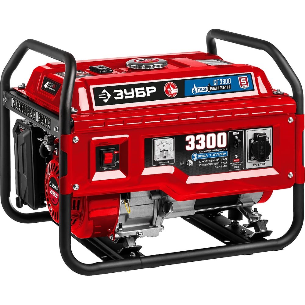 Гибридный генератор ЗУБР бензин/газ, 3300 Вт СГ-3300 - отличное решение для резервного энергоснабжения осветительных приборов, бытовой техники суммарной мощностью не более 3 кВт (с учетом пусковых значений). Наличие системы контроля напряжения AVR гарантирует стабильность характеристик. Генератор оборудован одной розеткой 220 В. Рама из качественного металлического профиля и наличие демпферных подушек обеспечивает устойчивость электростанции и низкий уровень вибраций во время работы.