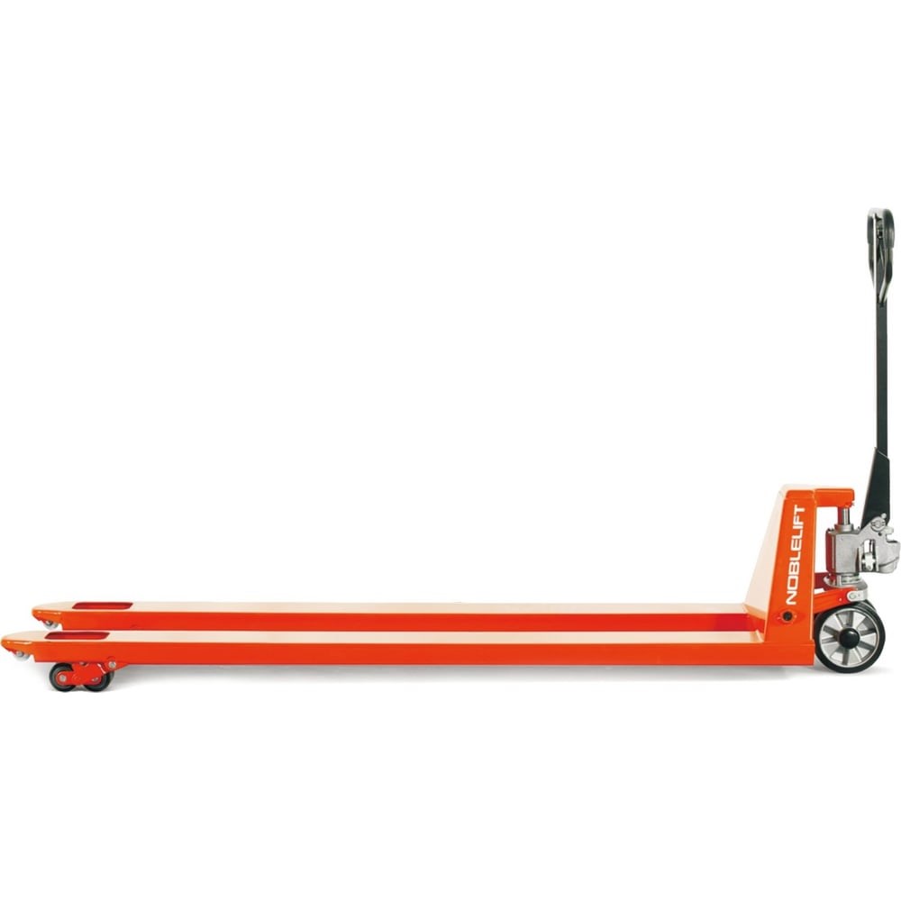 Гидравлическая тележка NOBLELIFT ACL20 540x2000 представляет собой рохлю с удлиненными вилами размером 2000 мм и общей их шириной 540 мм. С ее помощью удобно перемещать различные крупногабаритные и длинномерные грузы, которые нельзя передвигать стандартными тележками. У нее высокая грузоподъемность 2000 кг., можно работать с тяжелыми предметами. Гидравлическая тележка оснащена гидроузлом, позволяющим плавно поднимать и опускать груз с минимальными усилиями оператора, а благодаря эргономичной ручке, работать с данной рохлей будет максимально комфортно.