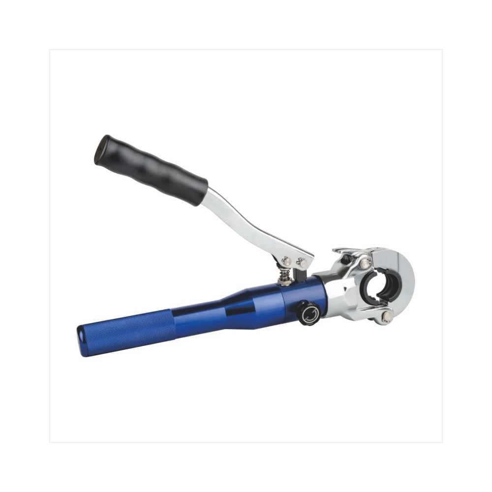 Инструмент позволяет создать надежное соединение фитинга и металлопластиковой трубы. Имеет встроенный гидравлический насос. Устройство имеют особую конструкцию: на одной из ручек установлен гидроцилиндр, шток которого механически связан с обжимной головкой. Вторая ручка соединена с поршнем насосного механизма. При сжимании рукояток поршень передает усилие на гидроцилиндр, создавая в нем давление, которое передается на обжимную головку с помощью выходного штока. Усилие, Т: 70Ход штока, мм: 22Диапазон обжима, мм: 16-32Матрицы, мм: Ф16, Ф20, Ф25 (Ф26), Ф32