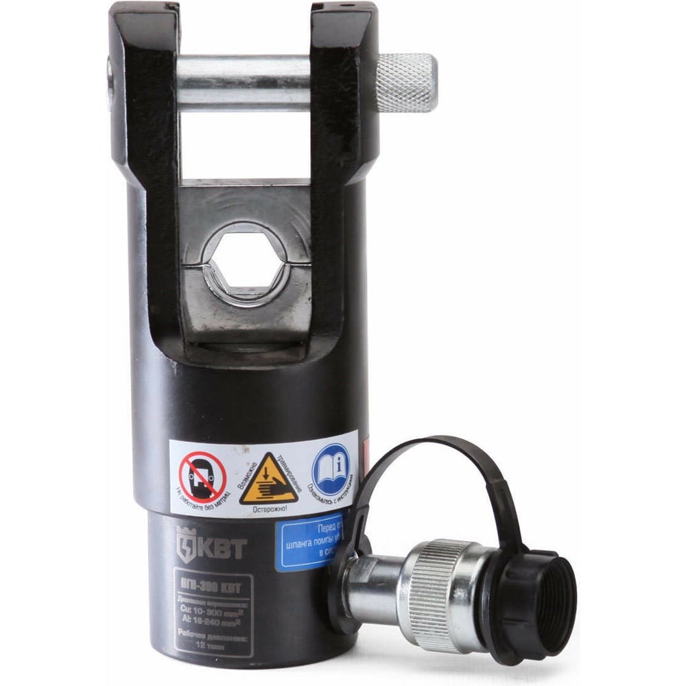 Гидравлический пресс ПГ-300 КВТ 85528 используется для опрессовки трубчатых медных, алюминиевых и алюмомедных кабельных наконечников и гильз сечением 10-300 мм2. Прибор имеет помповый тип управления. Конструкцией предусмотрен шестигранный профиль обжима. П-образная рабочая голова прибора выполнена из стали и имеет выносную конструкцию. Сменные матрицы позволяют легко подобрать необходимый профиль опрессовки. Максимальное усилие 12 тонн.