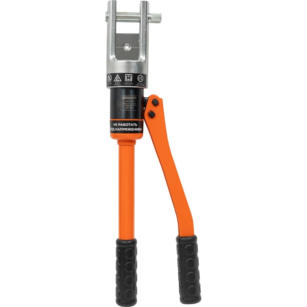 Гидравлический ручной пресс Gigant HMPJ-300с - представляет собой прочный и надежный в работе профессиональный инструмент, предназначенный для обжима наконечников из меди и алюминия, которые имеют сечения в диапазоне от 10 до 300 мм². Голова инструмента может вращаться на 360 градусов - можно настроить инструмент под разные задачи. Клапан автоматического сброса давления АСД защищает инструмент от механических поломок при неправильном использовании, а также гарантирует правильный цикл опрессовки наконечников. В комплекте удобный кейс и 10 сменных матриц (25, 35, 50, 70, 95, 120, 150, 185, 240, 300), а также ремкомплект. Голова инструмента изготовлена из высокопрочной стали и обладает высоким запасом прочности. Удобные прорезиненные накладки на рукоятках для удобства работы. Дополнительные характеристики: Длина: 470 мм Клапан ручного сброса давления Максимальное рабочее усилие - 7.8 тонн.
