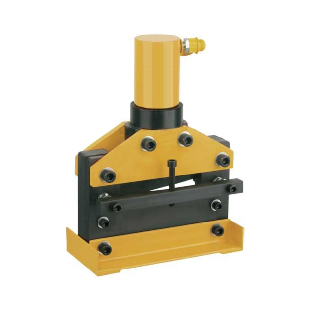 Гидравлический шинорез TMC-200 является специализированным оборудованием, предназначенным для резки медных и алюминиевых шин от 12 до 200 мм с использованием любого ручного гидравлического насоса с давлением до 700 бар (70 МПа) или электрической маслостанции одноклапанного действия с ручным или электромагнитным управлением. Шинорез TMC-200 имеет сварное основание, неподвижный нижний нож и гидроцилиндр с подвижным верхним ножом, закрепленным на штоке. На нижнем ноже шинореза установлен упор с регулировочным винтом для регулировки толщины отрезаемой шины.ПортативностьНож гильотинного типаНе требует последующей обработки, поскольку производится чистая резкаОснащен устройством для выравнивания шины относительно вертикальной осиОтверстие в гидроцилиндре имеет коническую резьбу 3/8"Разрезанный материал имеет плоскую формуВозможна резка металлической полосы толщиной до 6 мм