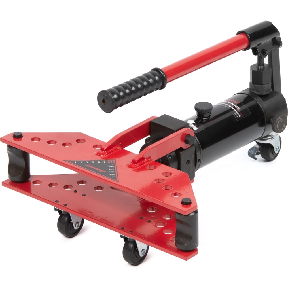 Гидравлический трубогиб способен изгибать трубы под углом до 90° в диапазоне от 1/4” до 1”. Холодная гибка, предварительный прогрев трубы не требуется. Работает быстрее, благодаря двухскоростной мощной гидравлической насосной системе. Длинная ручка насоса и оптимизированное усилие сводят к минимуму усталость оператора. Мощные ролики обеспечивают мобильность на рабочих площадках. Поставляется в деревянном ящике с набором гибочного инструмента и ремкомплектом. Усилие 6 тонн Длина рамы 150 мм Диапазон изгиба (внешний диаметр) 13-33 мм Размеры трубогибочного инструмента 1/4", 5/16", 3/8", 1/2", 3/4", 1"