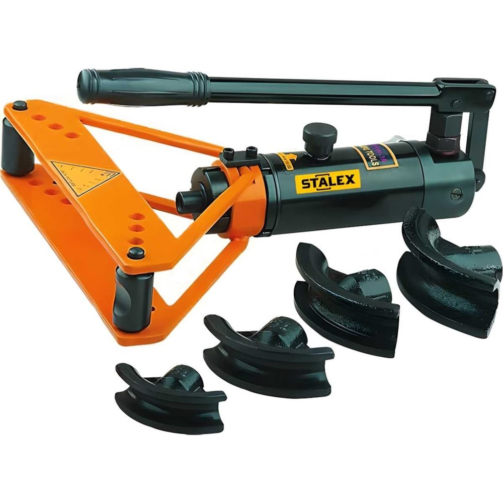 Гидравлический трубогиб (3/8-1 дюйм, рабочий ход 150 мм, 6т, в кейсе, 17 кг) Stalex MHPB-1A HHW-1A удобен при монтаже трубных металлических систем: Экономичная прокладка труб - нет нужды в дополнительных фитингах; Уменьшается риск сплющивания; Уменьшается время прокладки всей системы. Устройство осуществляет гибку в одной плоскости, что позволяет использовать его также при ремонте труб. Гидравлическая система обеспечивает достаточное усилие для сгибания.