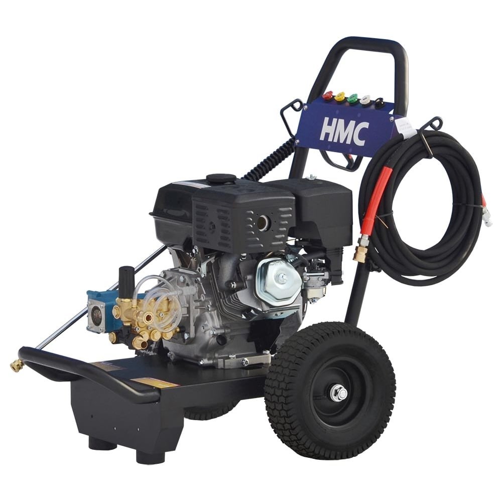 Аппарат высокого давления HMC производится на базе бензинового двигателя и надежного насоса высокого давления. Компактный и удобный в использовании аппарат с оптимальными рабочими характеристиками 280 Бар, 15 л/мин для высококачественной профессиональной очистки труб и мойки поверхностей. Профессиональный аппарат для подрядных организаций, ЖКХ, водоканалов и промышленных предприятий.Исполнение на колесах, эргономичная разборная рама позволяют легко грузить, выгружать и перемещать аппарат. Для использования в условиях недостатка воды аппараты комплектуются баками для воды емкостью 200 – 1000 л и подкачивающим насосом.Особенности:Надежный профессиональный кривошипно-шатунный насос.Благодаря прямому приводу насоса сокращается количество движущихся деталей, что минимизирует обслуживание и повышает производительность насоса.Компактная и эргономичная конструкция тележки – перевозка осуществляется одним человеком.Место для хранения пистолета, шланга и форсунок на раме аппарата для быстрого доступа к ним и удобства эксплуатации.Пневматические колеса с усиленным диском, диаметром 30 см для удобства перемещения аппарата по любой поверхности.Быстроразъемное соединение шланга и форсунок для простого подключения различных аксессуаров.Проточный фильтр с возможностью промывки.В стандартной поставке аксессуары для очистки поверхностей.Обширный ассортимент дополнительных аксессуаров.