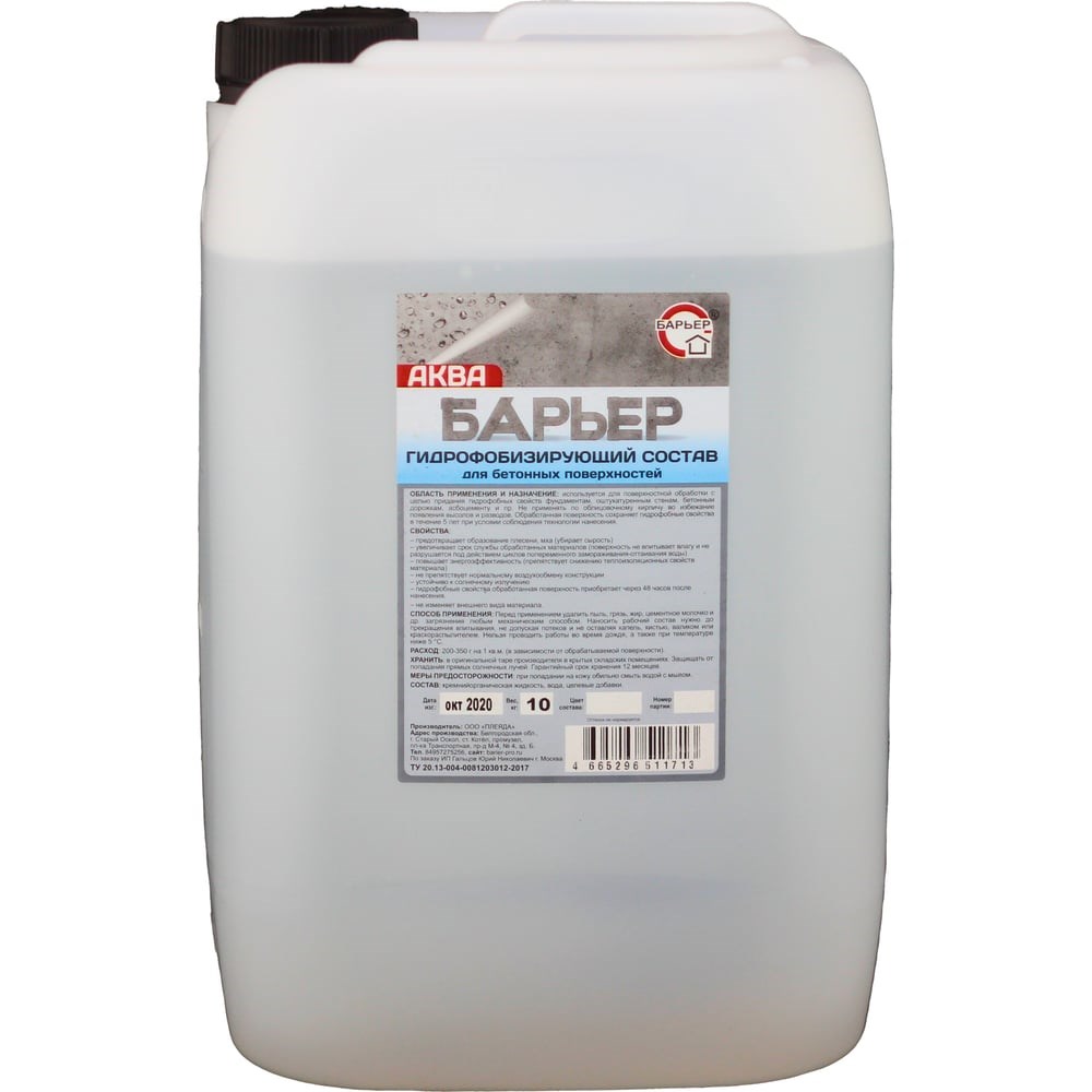 Гидрофобизирующий состав для бетона БАРЬЕР АКВА канистра 10 кг 4665296511713 защищает сооружения из шифера (кровли, навесы) и бетона (фундаменты, фасады, еврозаборы) от негативного воздействия осадков и конденсата. Раствор создает долговечное покрытие, которое не дает влаге проникать внутрь обработанных оснований. При соблюдении технологии нанесения водоотталкивающие свойства сохраняются не менее 5 лет. «БАРЬЕР-АКВА» также используют для гидроизоляции внутри сырых помещений, таких как погреба и подвалы. Внимание! Продукт не подходит для обработки облицовочного кирпича.