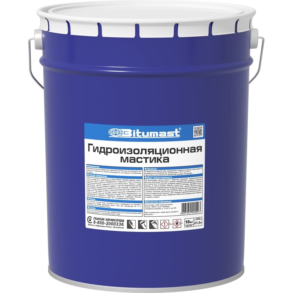 ПРИМЕНЕНИЕВысококачественная обмазочная гидроизоляция бетонных конструкций и деревянных поверхностей, элементов фундамента, заглубляемых в землю.ОПИСАНИЕ МАТЕРИАЛАБитумная гидроизоляционная мастика Bitumast представляет собой полностью готовый к применению продукт на основе нефтяного битума, содержащий профессиональные технологические добавки и растворитель.ПРЕИМУЩЕСТВАготова к применениюсодержит антисептическую добавкувозможно наносить методом безвоздушного распыленияТЕХНОЛОГИЯ ПРИМЕНЕНИЯМастику тщательно перемешать по всему объему. Обрабатываемая поверхность должна быть сухой, предварительно очищенной от грязи, непрочных остатков старого покрытия. Наносится при помощи кисти, валика, а также методом безвоздушного распыления с диаметром сопла ≥1,5 мм. При механическом методе безвоздушного распыления, мастику возможно разбавить уайт-спиритом, сольвентом (не использовать автомобильное топливо) в пропорции 10% растворителя к общему объёму продукта. Наносится в 2-3 слоя, в зависимости от поверхности. При работе в условиях низких температур рекомендуется отогреть в течение суток при температуре не менее +15ºС. Перед нанесением рекомендуется обработать поверхность битумным праймером Bitumast. Допускается использовать не ниже - 20ºС (предварительно отогрев).ХРАНЕНИЕВ герметично закрытой таре, предохраняя от прямых солнечных лучей, вдали от нагревательных приборов при температуре от -30ºС до +50ºС. Гарантийный срок хранения в герметичной упаковке - 36 месяцев.