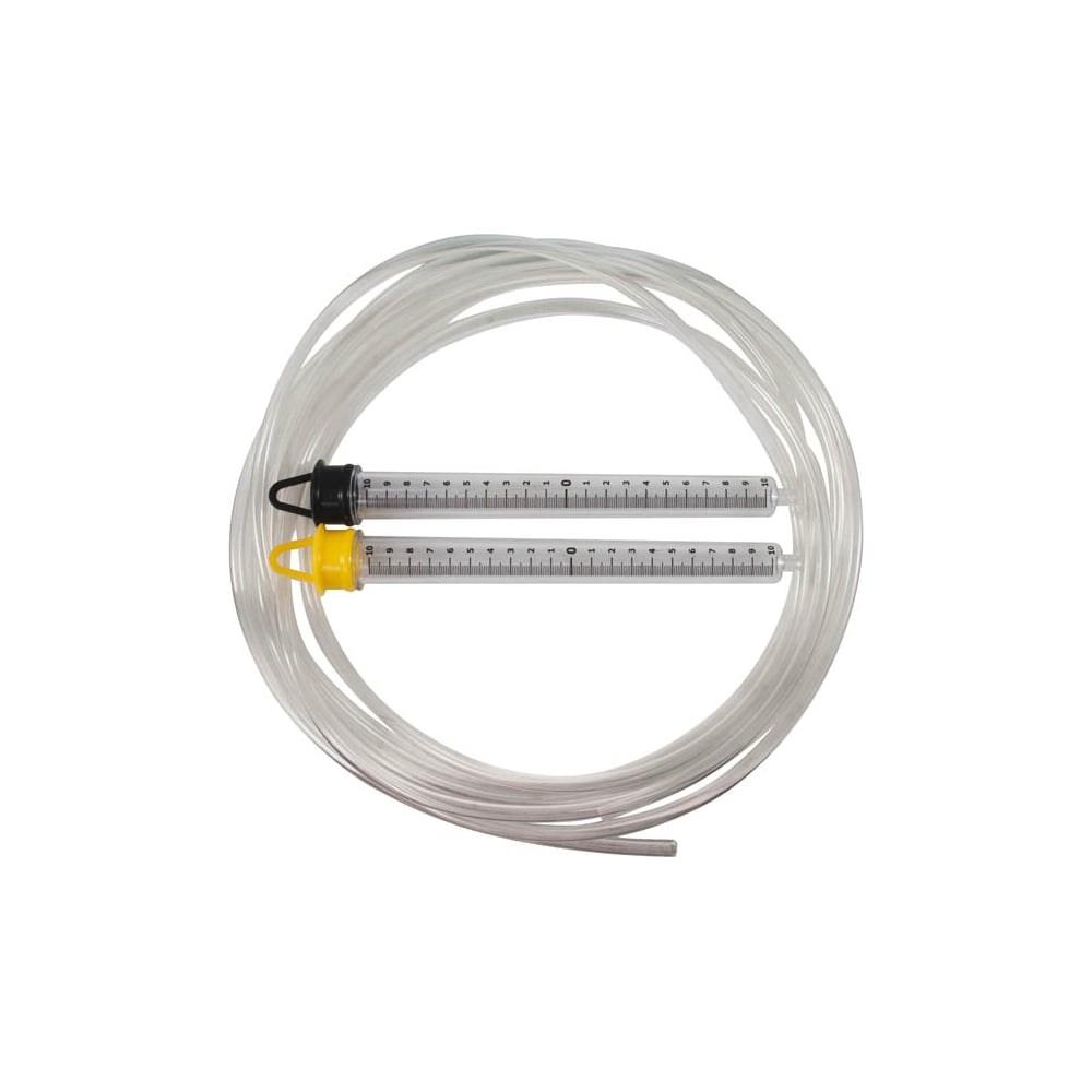 Гидростатический уровень 20м РОС Мастер 18790 применяется для выявления отклонений предметов находящихся в горизонтальной плоскости. Работает по принципу сообщающихся сосудов. Состоит из двух колб с гидравлическими крышками и шланга повышенной прочности. На сосудах расположена крашенная шкала.