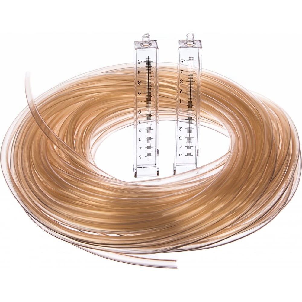 Гидростатический уровень 25м РОС Стандарт 18725 работает по принципу сообщающихся сосудов. Является простым и удобным приспособлением для выравнивания расположенных предметов на горизонтальной поверхности, например, при заливке пола или укладки кафельной плитки. Состоит инструмент из двух колб со шкалой и закручивающимися крышками. Шланг достигает длины 25м и выполнен из материала повышенной прочности.