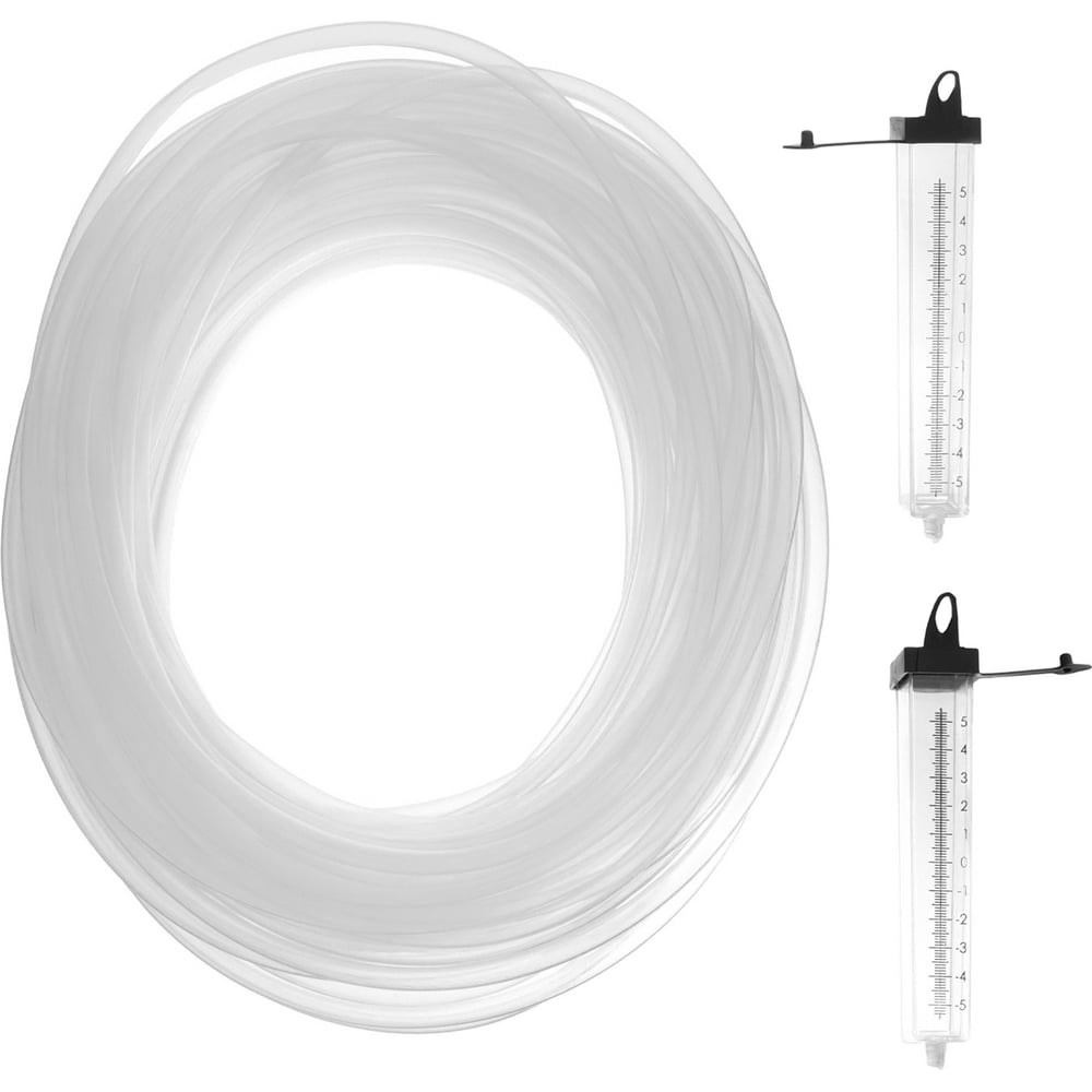 Гидроуровень со шкалой СИБРТЕХ 37057 применяется при проведении строительных и ремонтных работ для нанесения разметки на поверхность на больших расстояниях, например при укладке кафеля или заливке стяжки. Состоит из шланга диаметром 8 мм, на концах которого установлены пластмассовые колбы с нанесенной на них шкалой. Общая длина гидроуровня 25 м.