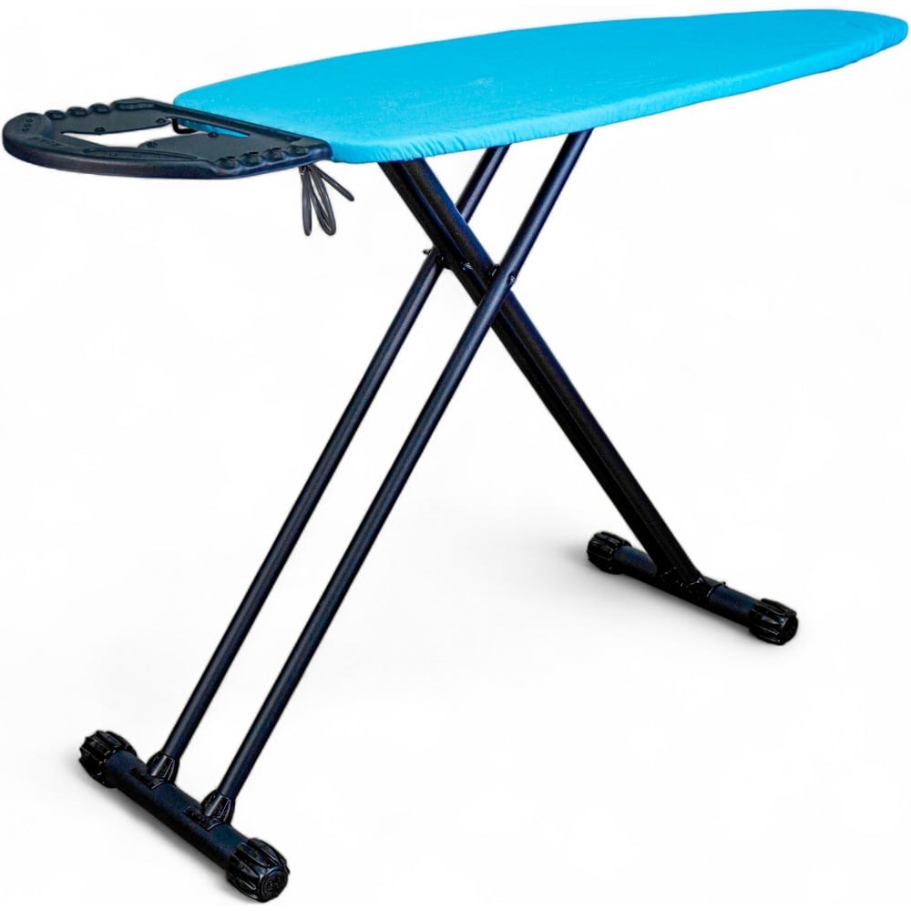 Kanat EP-710 Elips Pro — напольная гладильная доска, которая за 10 секунд раскладывается до широкого перфорированного стола 34 × 110 см и выдерживает 15 кг белья без прогиба. Металлическая поверхность пропускает пар с двух сторон, поэтому утюг скользит быстрее, а складки разглаживаются с первого движения . Плавная 8-ступенчатая регулировка высоты 64–92 см позволяет гладить стоя или сидя, не наклоняясь к ткани. Подставка под утюг 37 × 26,5 см покрыта электростатическим эпоксидным слоем и оснащена силиконовой огнеупорной вставкой — можно ставить прибор горячей подошвой вниз, не боясь пластика и чехла . Прочный хлопчатобумажный чехол держится без заломов благодаря фиксатору по периметру, а пластиковые накладки на ножках надёжно фиксируют доску на плитке, ламинате или ковре, не оставляя царапин. После глажки конструкция складывается до толщины 16 см и весит 7,7 кг — её легко убрать за шкаф или взять с собой на дачу . В комплекте: гладильная доска Kanat EP-710 и заводская упаковка.