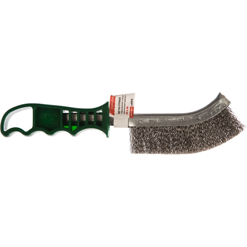 Гофрированная ручная щетка Профоснастка пластиковая ручка 655 Эксперт SS 0,3 20401005 предназначена для удаления ржавчины, окалины или старой краски. Щетина выполнена из нержавеющей стали. Рукоятку из пластика удобно удерживать в руке.