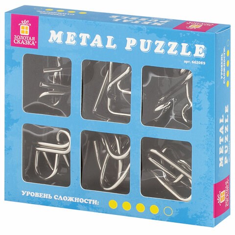 Головоломки металлические ЗОЛОТАЯ СКАЗКА (уровень сложности "ЭКСПЕРТ"), набор 6 штук, 662089