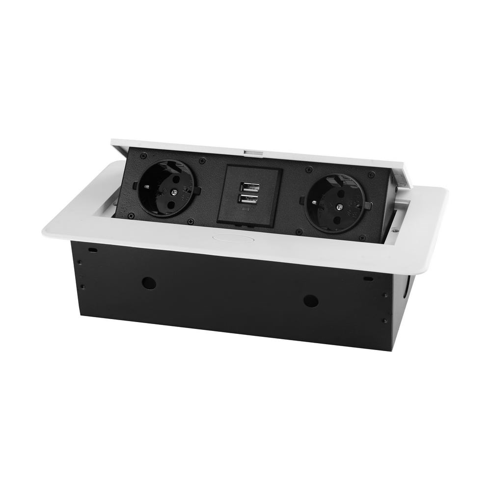 Горизонтальная выдвижная розетка ROCKETSOCKET 2 euro 16a, 2 usb a с блоком 5В/2.1а, проводка, цвет белый SHS018-W обладает особой прочностью и защитой от механических повреждений. Металлизированная отделка верхней декоративной крышки придает розетке современный внешний вид. Плавное открытие крышки происходит автоматически, после нажатия на кнопку спускного механизма. Закрытие происходит посредством механического давления на выдвинувшийся элемент крышки, до характерного щелчка фиксатора. Характеристики: Розетки Schuko 2 шт. Розетки USB 2 шт. Сетевой провод нет. Горизонтальная модель. Возможность монтажа в столешницу любого размера. Напряжение: 220-240 V - 50Hz. Максимальный ток: 16А (2,7 кВт). Порт USB зарядки: 5В пост, Макс. суммарный ток 2100 мА. Степень защиты от воздействия окружающей среды: IP20. Степень защиты от поражения электрическим током: I. Гарантия - 12 месяцев.