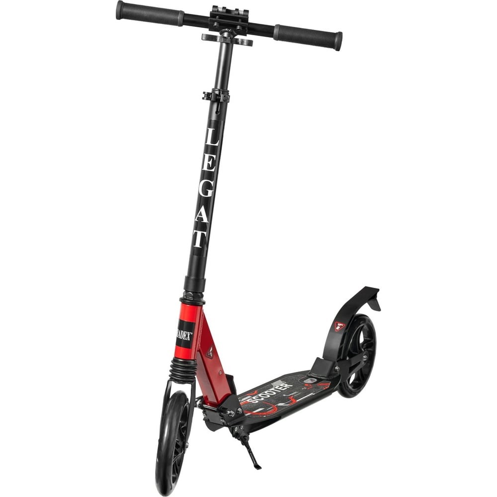 Городской самокат BRADEX колеса 200 мм, legat SF 0845 – маневренный складной самокат для комфортных городских прогулок, повседневного катания и активного отдыха в парке. Прогулочный самокат имеет удобную платформу, которая обеспечивает отличную управляемость и устойчивость. Алюминиевая дека оснащена ребрами жесткости и противоскользящим рельефом. Максимальная нагрузка на конструкцию составляет 100 кг. Высокий телескопический руль с грипсами из термопластичной резины легко регулируется под рост райдера: от 120 до 190 см. Поворотный зажим руля помогает надежно закрепить его на нужной высоте. На руле предусмотрен зажим для фиксации ручек. Преимущество данной модели – большие полиуретановые колеса 200 мм, крепкие подшипники ABEC-9 с амортизацией переднего и заднего колеса. Такое сочетание позволяет получить отличный накат и легко сглаживает все неровности дорожного покрытия. Заднее колесо городского самоката оснащено крылом-тормозом. Благодаря практичной складной подножке самокат можно припарковать без дополнительной опоры. Городской самокат имеет удобную систему складывания: его легко складывать, переносить или перевозить в багажнике автомобиля. В комплекте есть шестигранный ключ для сборки. Данная модель подходит как для новичков, так и уверенных райдеров.