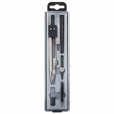 Комплектацияигольная вставка, пенал с запасным грифелем, рейсфедерная вставка, ручка, циркуль