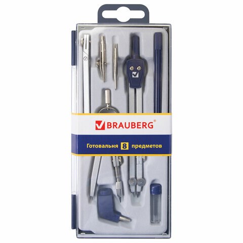 Готовальня BRAUBERG "Student Oxford", 8 предметов: наполнение-1, пенал с подвесом, 210350