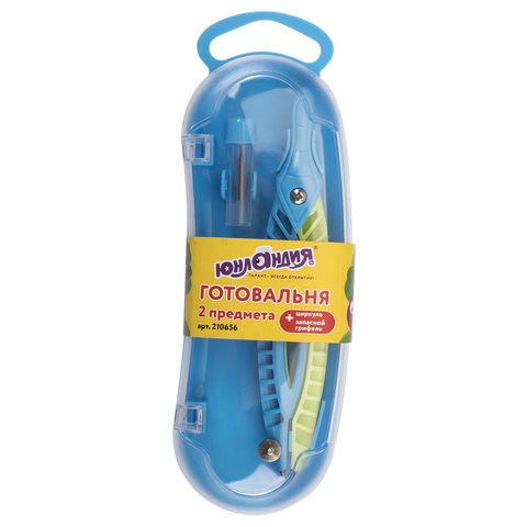 Готовальня ЮНЛАНДИЯ, 2 предмета: пластиковый циркуль 120 мм, грифель, пенал, 210656