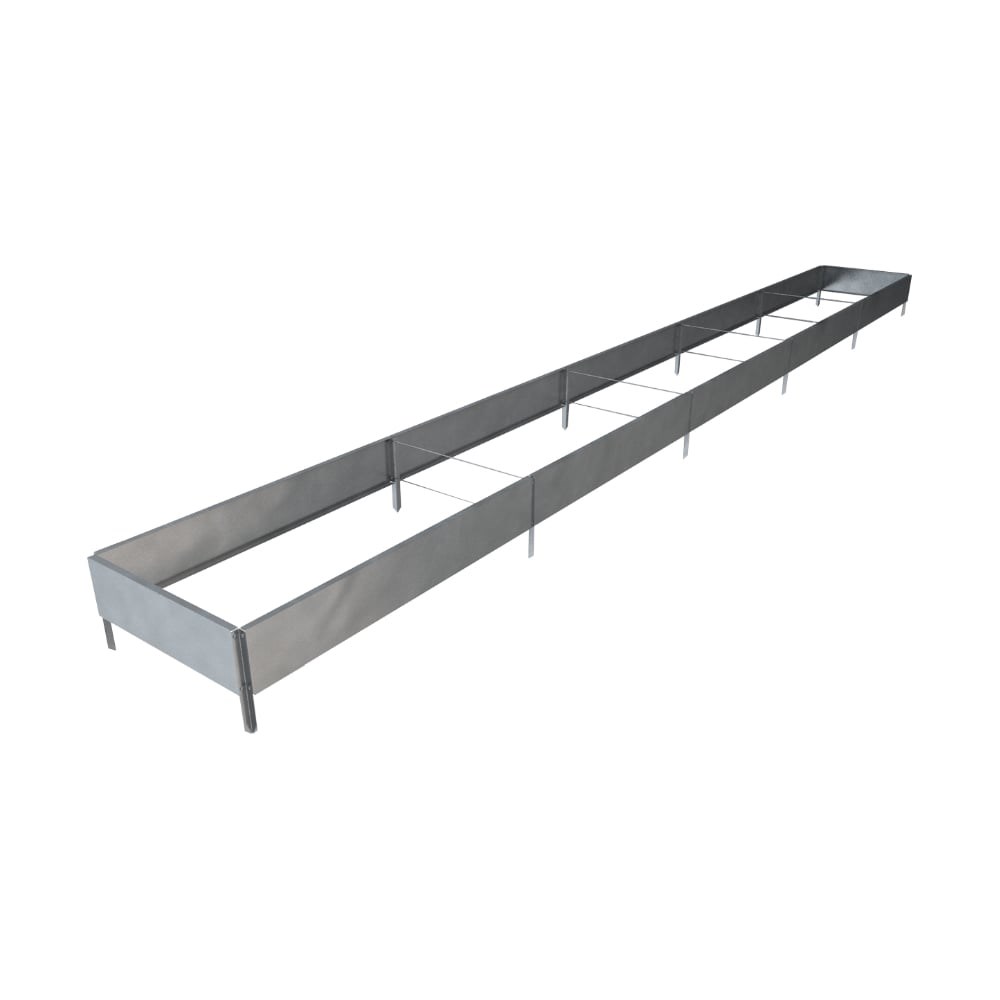 Готовая грядка Delta-Park GX 0.45х4.75 м, серебристая 30020GX_45465Zn - прямостенная грядка высотой 15 см, подходит для выращивания большинства культур. Грядки получаются ровные и прослужат много лет, без дополнительного ухода. Установка и сборка грядки не составит труда. Стяжки и колышки, которые входят в комплект, предохраняют от развала грядку и надёжно удерживают её на земле. Основным преимуществом прямостенных грядок является то, что они не боятся коррозии и ржавчины. Такие грядки можно устанавливать как на открытом участке, так и в теплице. Из бортиков можно собрать любую длину грядки (рекомендуемый размер не более 7,6 метров).