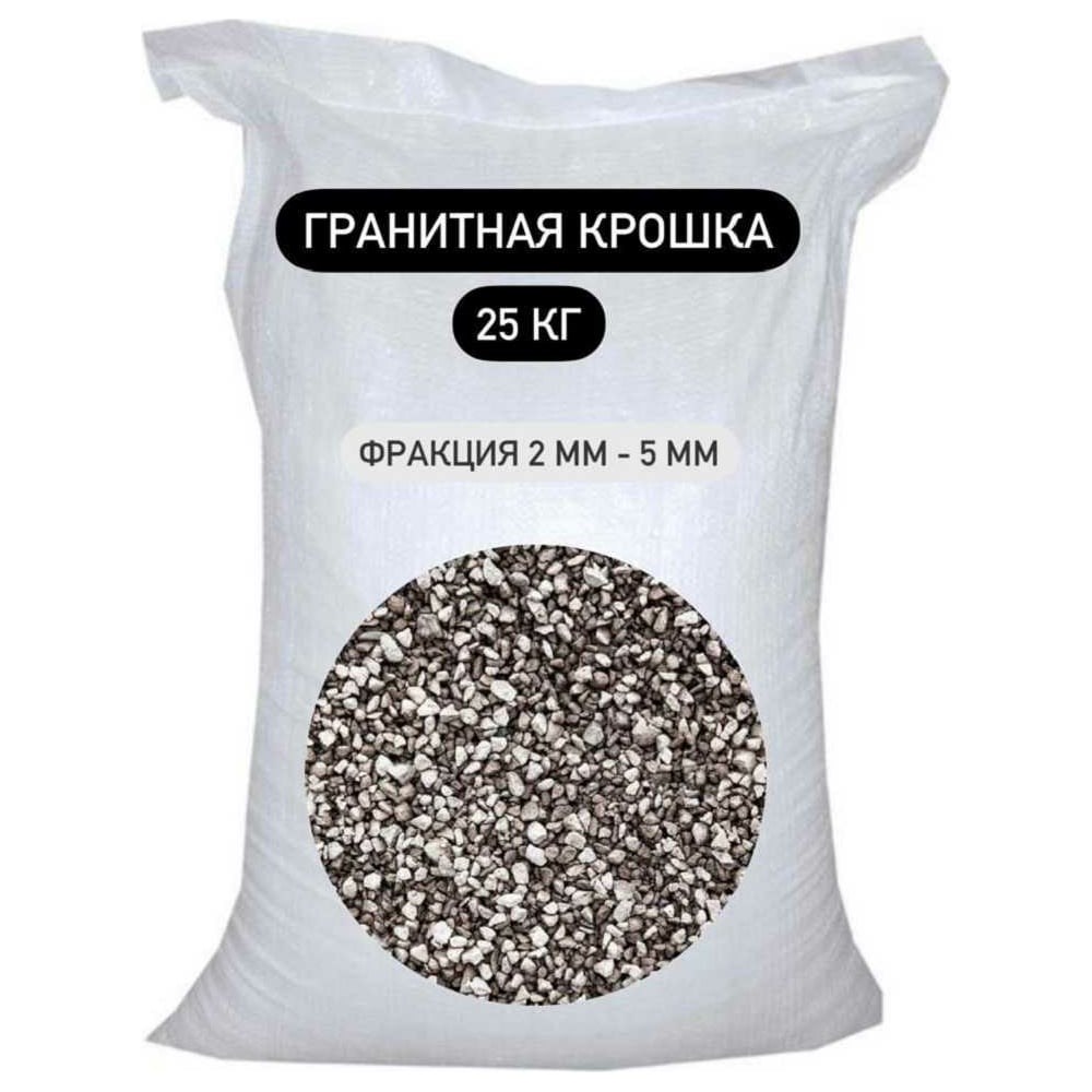 Гранитная крошка фракция 2-5 мм - природный материал. Сфера применения очень широка, но самое большое распространение он получил в качестве отличного средства против гололеда на улицах. Главное преимущество гранитной крошки в том, что она имеет природное происхождение, в отличие от иных химреагентов, которыми часто посыпают тротуар. Она не приносит никакого вреда здоровью человека и домашних животных. Как эффективный очиститель воды в системах фильтрации. Для того, чтобы очистить воду в разных системах — таких, как промышленные объекты, бурительные скважины, бассейны и колодцы. Мелкий гранитный отсев выполняет поддерживающую роль: именно его слой не допускает такого процесса, как вынос вещества из фильтрационных систем. Происходит удерживание взвешенных частиц, которые содержатся в воде, а сам ее поток не замедляется, что и обеспечивает качественный уровень очистки. Компонент для приготовления бетона. Материал с добавлением гранитной крошки отличается прочностью и влагоустойчивостью. В оформлении ландшафтов дачных, придомовых участков и парков (гранитная крошка для дорожек). В виде декоративных элементов жилых и офисных помещений. При изготовлении покрытий для пола из полимеров. При изготовлении тротуарной плитки высокой прочности — для подчеркивания фактуры плиточного материала, при укладке асфальта.