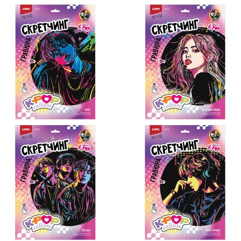 Гравюра в технике Скретчинг "K-POP" АССОРТИ, цветная основа 30х40 см, штихель, LORI, Гро/м-001