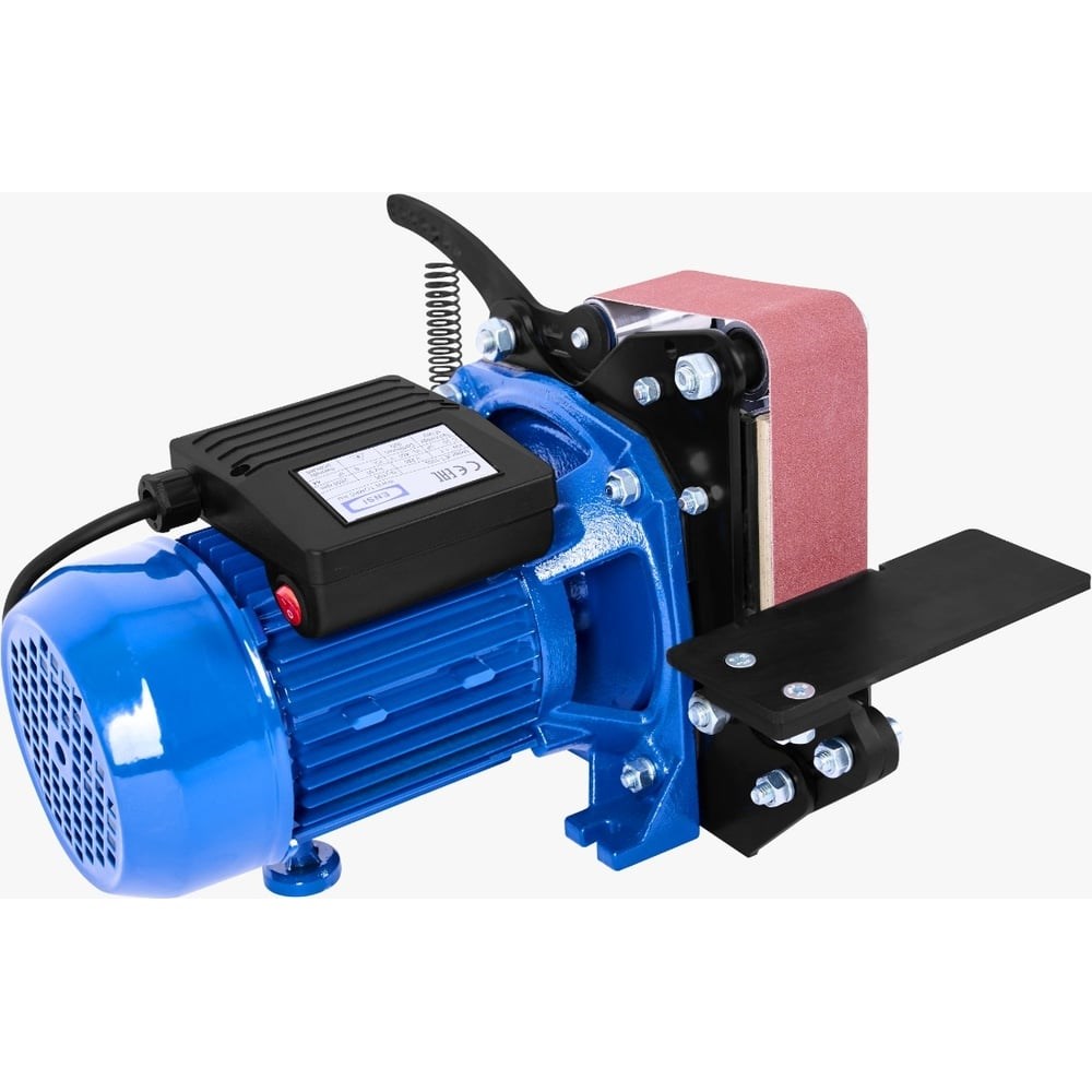 Ленточный гриндер «Удачный NEW» — современный станок для обработки: металла, древесины, пластика, полимеров, керамики и стекла. Оснащен мощным двигателем и высокоскоростными подшипниками закрытого типа, не требующими смазки. Система включает опорный столик, регулируемый по высоте и углу наклона. Для компенсации растяжения ленты предусмотрен механизм натяжения за счёт пружинного преднатяжителя, формирующего постоянное равномерное натяжение ленты. Возможность изменения усилия натяжения ленты происходит за счет перестановки пружины в дополнительные отверстия на рычаге. Модель применима как в дачном строительстве, так и для нужд бизнеса. Работа не требует специальной квалификации. Гриндер поставляется с опорный столом. Предназначен преимущественно для шлифовки плоских поверхностей. Основные функции: формирование кромки (затачивание) ножей, топоров, стамесок, иных инструментов; снятие ржавчины и краски; торцовка — подготовка для соединения труб из металла или полипропилена; срезание заусенцев и дефектов после неровной обрезки; шлифовка дерева, керамики, стекла, пластика и полимеров. Двигатель 1,1 кВт Частота вращения двигателя - 2850 об/мин Скорость движения ленты - 840м/мин(14 м/с) Работает от питания 220В Изменения наклона опорного столика угол 50 ° Размер опорно-переходной пластины 166х70мм Размер шлифленты: длина 610-660мм, ширина 50мм Пружинный преднатяжитель создает равномерное натяжение Лента не соскальзывает при работе и регулируется после вытяжения Габариты станка 365х371х239мм