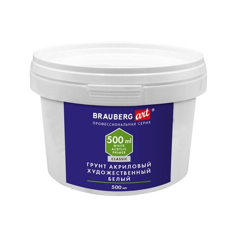 Грунт акриловый художественный, белый, в пластиковом ведре, 500 мл, BRAUBERG ART CLASSIC, 192347