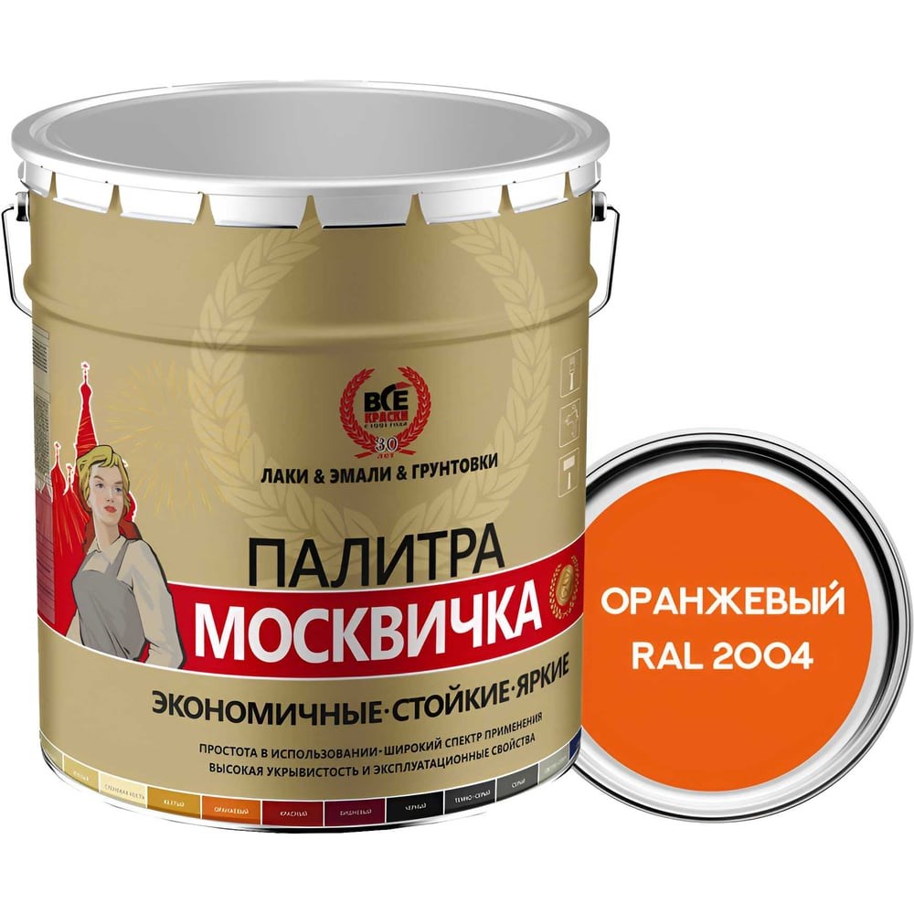 Грунт-эмаль 3 в 1 Москвичка МЕТА-МБ предназначена для защиты и окраски металлических поверхностей, свободных от ржавчины и/или частично подвергнутых коррозии со слоем плотно держащейся ржавчины толщиной до 50 мкм, применяемом как самостоятельное защитное покрытие и в комплексном покрытии, в условиях умеренного климата.Сочетает в себе свойства преобразователя ржавчины, антикоррозийного грунта и декоративной эмали. Прекрасно подходит для применения по металлическим, деревянным и другим поверхностям изделий, подвергающихся атмосферным воздействиям. Подходит для окрашивания цветных металлов и оцинкованной поверхности. Оцинкованный металл должен простоять не менее года (состариться), для образования оксидной пленки.В силу высокой скорости высыхания и формирования покрытия, дает возможность при необходимости, наносить однослойное защитное покрытие – толщиной до 80-100 мкм. Пленка обладает хорошей стойкостью к УФ-излучениям. Позволяет производить окраску при отрицательных температурах до -30°С.
