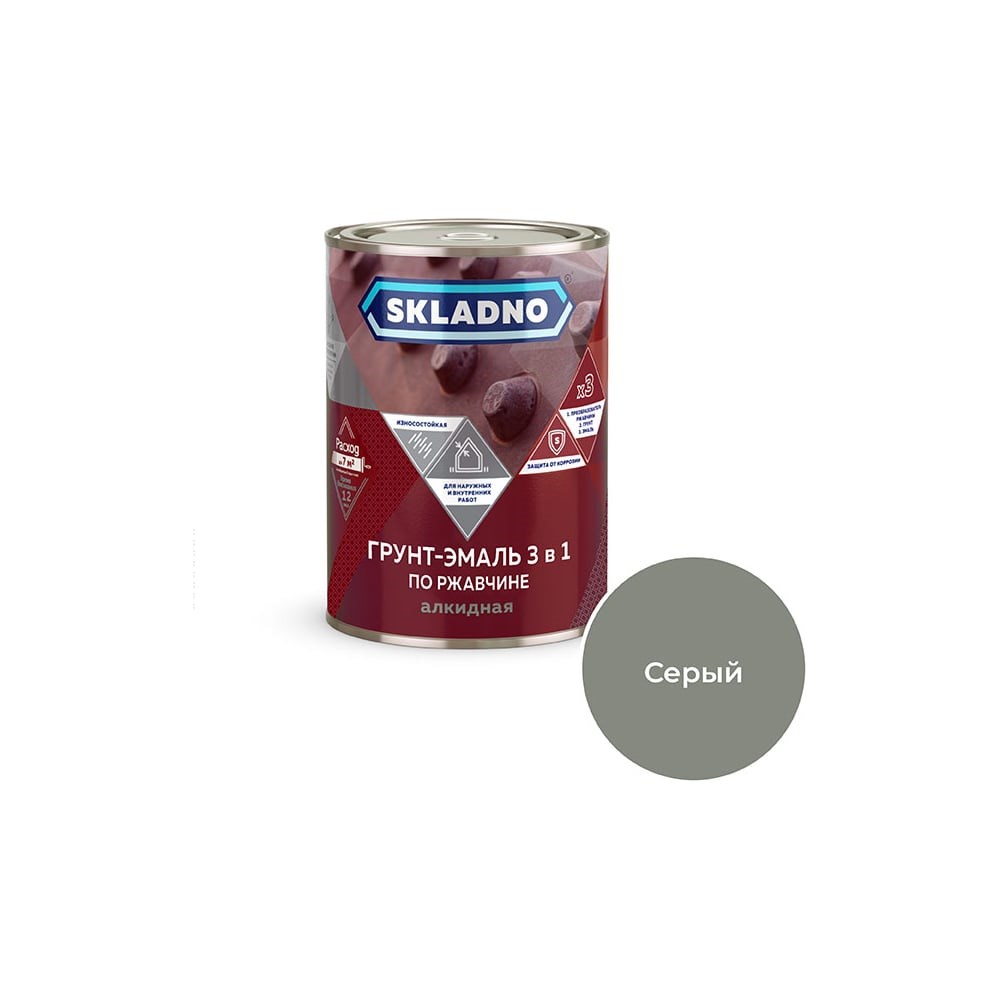 Предназначена для окрашивания чистых и ржавых металлических поверхностей. Состав: модифицированная алкидная смола, антикоррозионные наполнители, пигменты, растворитель, сиккатив, функциональные добавки; Вес: 0,8 кг; Цвет: серый. Серый Уникальный продукт сочетающий в себе свойства 3-х компонентов: преобразователя ржавчины, антикоррозионного грунта и декоративной эмали. Преимущества: - Возможно нанесение прямо на ржавую поверхность; - Прекращает развитие ржавчины на металле; - Экономит время - легкая в нанесении.