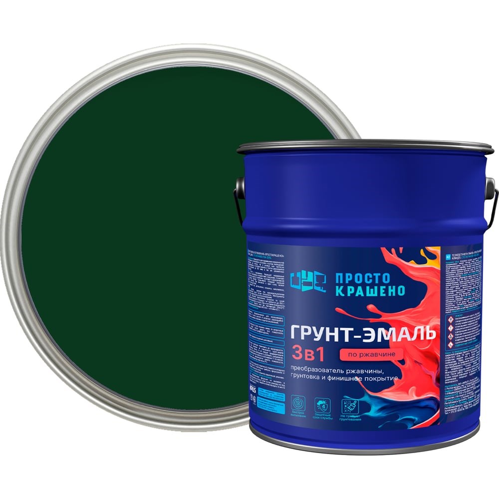 Грунт-эмаль Простокрашено! по ржавчине 3 в 1, зеленая, 5 кг 70265 применяется для окрашивания поверхностей эксплуатируемых в атмосферных условиях и внутри помещений: металлических, как чистых, так и ржавых или частично прокорродировавших с остатками окалины и плотно держащейся ржавчины до 100 мкм; а также деревянных и минеральных. Продукт сочетает свойства преобразователя ржавчины, антикоррозионной грунтовки и декоративной эмали, упрощая процесс окрашивания. При нанесении в один слой, может использоваться как грунтовка. Внимание! Фото может отличаться от товара, при выборе ориентируйтесь на технические характеристики.
