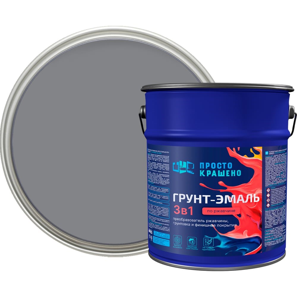 Грунт-эмаль Простокрашено! по ржавчине 3 в 1, серая, 5 кг 70267 применяется для окрашивания поверхностей эксплуатируемых в атмосферных условиях и внутри помещений: металлических, как чистых, так и ржавых или частично прокорродировавших с остатками окалины и плотно держащейся ржавчины до 100 мкм; а также деревянных и минеральных. Продукт сочетает свойства преобразователя ржавчины, антикоррозионной грунтовки и декоративной эмали, упрощая процесс окрашивания. При нанесении в один слой, может использоваться как грунтовка. Внимание! Фото может отличаться от товара, при выборе ориентируйтесь на технические характеристики.