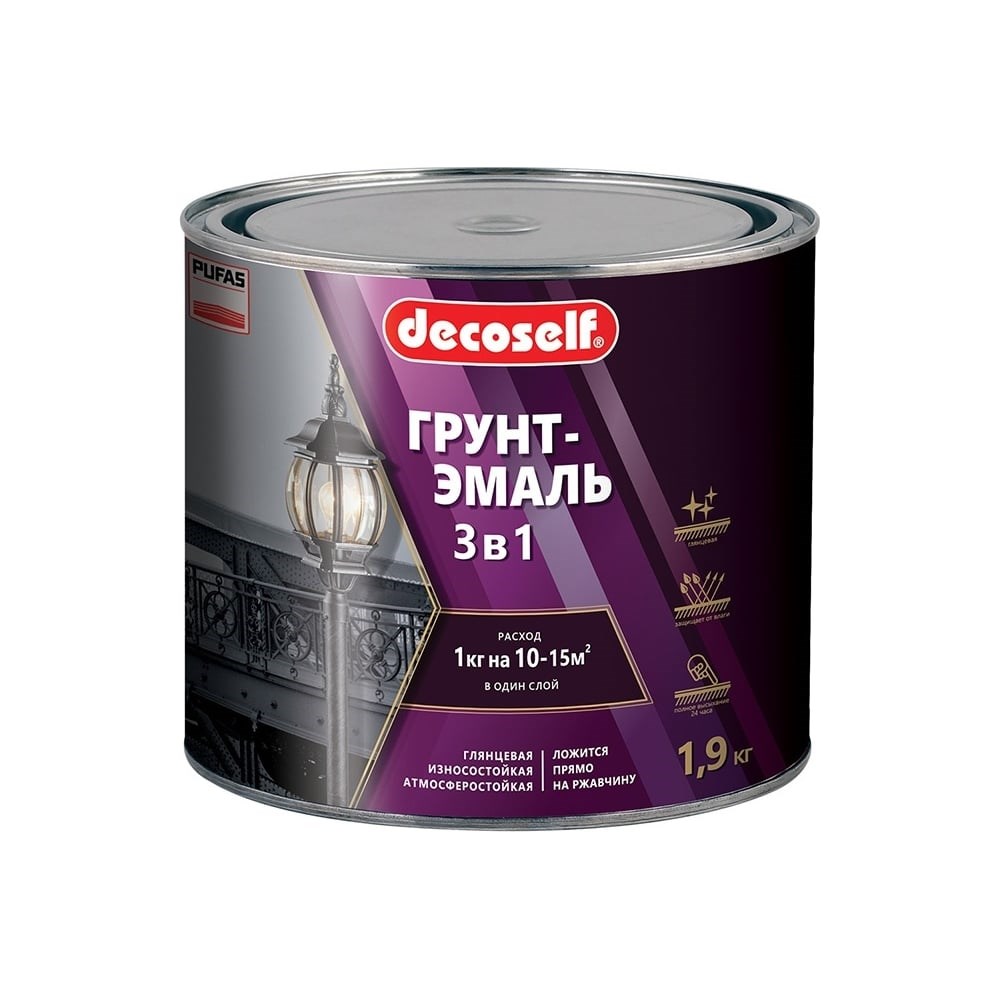 Грунт-эмаль Pufas 3 в 1 белая глянц. Decoself 1,9кг тов-200081