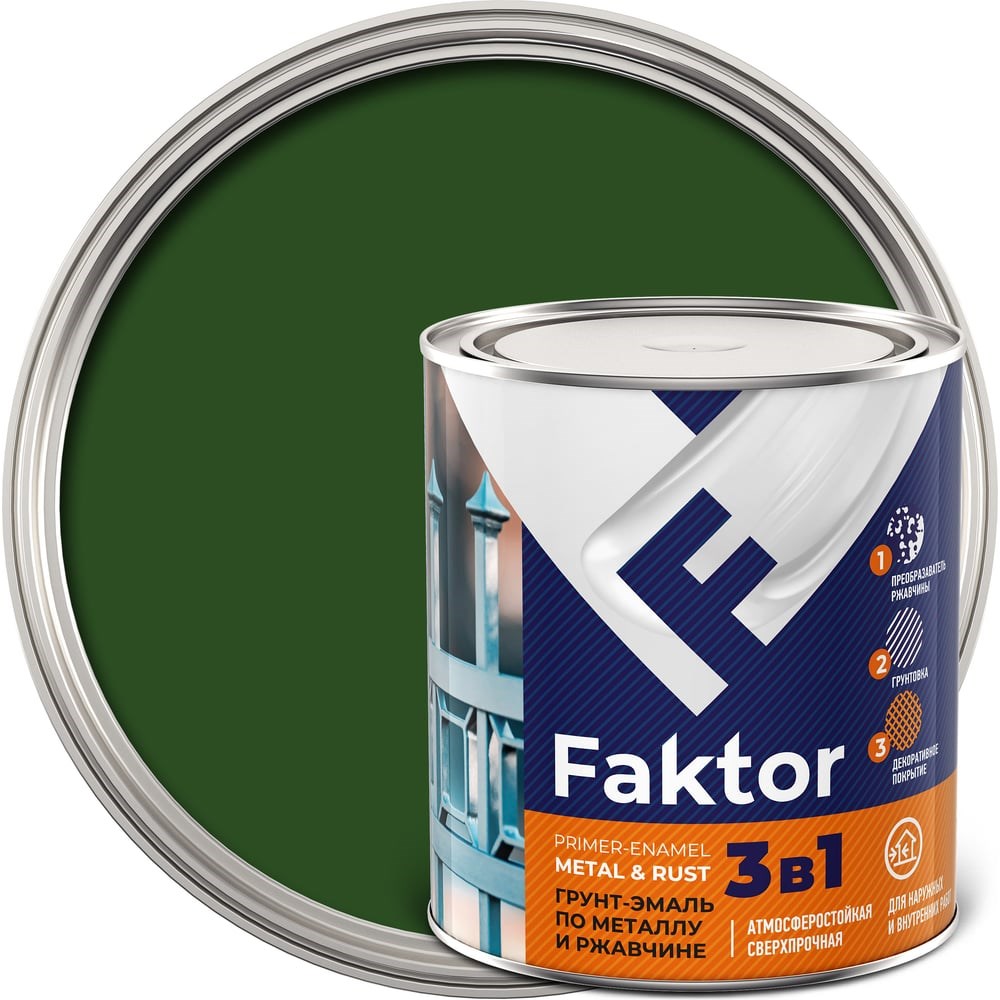 Грунт-эмаль на ржавчину FAKTOR 3 в 1 предназначена для преобразования ржавчины, грунтования и окраски чистых и ржавых металлических поверхностей, включая крупногабаритные конструкции, изделия сложной конфигурации (трубы, мебель, решетки, ограды и т.д.), эксплуатируемые снаружи и внутри помещений. Покрытие атмосферостойкое, устойчиво к УФ-лучам и осадкам. Может применяется как самостоятельное покрытие в 2 слоя. Допускается окрашивание деревянных поверхностей.