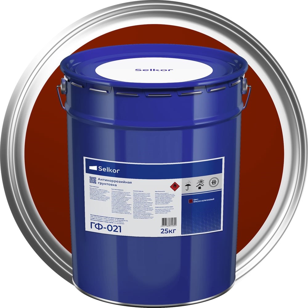 Грунтовка ГФ-021 предназначена для подготовки металлических и деревянных поверхностей к финишной отделке различными типами эмалей. Грунтовка эффективно защищает обрабатываемые материалы от коррозии и плесени, позволяет выровнять основание, снизить расход ЛКМ и продлить срок службы декоративного покрытия.Подготовка поверхности:Поверхность предварительно очистить от рыхлого слоя ржавчины (окалины, пригара), пыли, грязи, водорастворимых солей, жиров, масел, следов консервационных и технологических смазок. Ручную очистку поверхности можно проводить металлической щеткой, скребком, наждачной бумагой. В случае отсутствия отслоений, шагрени и других дефектов поверхность очистить только от отслаивающихся слоев предыдущего покрытия.Нанесение покрытия:Окраска производится по сухой, обезжиренной поверхности при температуре окружающего воздуха и подложки от 0 °С до +30 °С и относительной влажности воздуха не более 75% (рекомендуется наносить при температуре выше +8 °С). При окрашивании при низких температурах температура поверхности должна быть не менее чем на 5 °С выше точки росы. Грунтовку тщательно перемешать до однородного состояния при скорости вращения венчика не более 300 оборотов в минуту, выдержать в течение 10 минут до исчезновения пузырей. При необходимости можно разбавить толуолом Selkor. Окрашивание поверхности производить в 1-2 слоя кистью или краскораспылителем. Время межслойной сушки при температуре (20±2) °С – 2-4 ч.