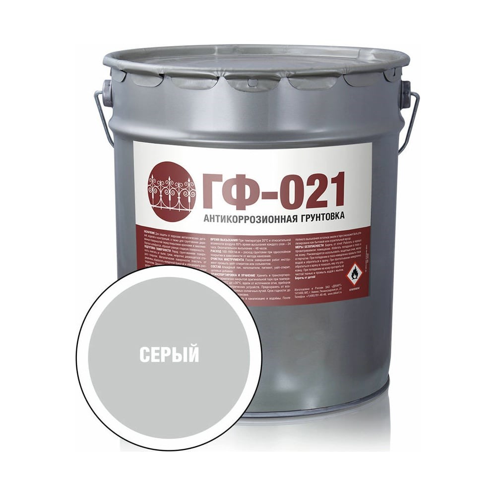 Антикоррозионная алкидная грунтовка ЗАО Декарт ГФ-021 серая, 20 кг 25686 применяется для экономичного грунтования металлических и деревянных поверхностей перед покрытием красками и эмалями. Предназначена для наружных и внутренних работ.