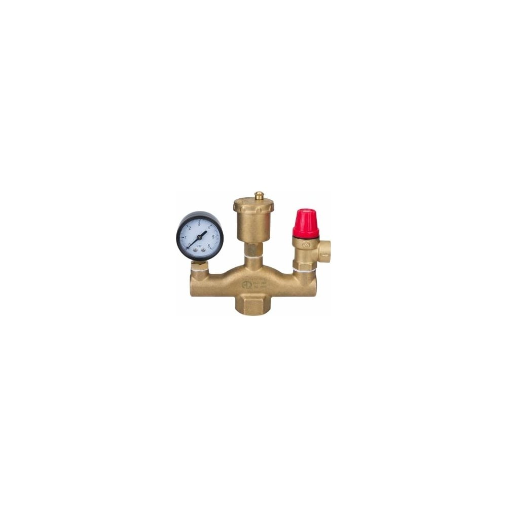 Группа безопасности котла AQUALINK выполняет функцию автоматического предохранительного устройства в системах отопления и горячего водоснабжения. Функционал изделия позволяет обеспечить: 1. Защиту от превышения давления в системе; 2. Вывод скопившихся газов из теплоносителя; 3. Индикацию давления в системе, а также отображение пика давления. Изделие комплектуется автоматическим воздухоотводчиком, предохранительным клапаном (с неизменяемым и предустановленным значением открытия) и манометром. Рабочее давление - 0.3 МПа.Рабочая среда - вода, воздух.Температура - 110оС.Давление настройки предохранительного клапана - 0.3 (3) МПа (бар).Максимальная мощность теплогенератора - 50 кВт.Диапазон шкалы манометра - 1-6 бар.Производительность по воздуху - 2.68 м.куб/час.Производительность по воде - 1,34 м3/час
