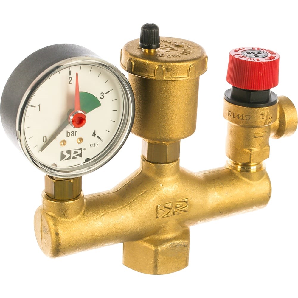 Группа безопасности с изоляцией SR Rubinetterie 1, 3 BAR 0161-2500GD00 обеспечивает контроль и безопасность замкнутой системы благодаря комплектующим изделиям, установленным на коллекторе. Рабочая среда - вода, гликолевые растворы. Максимальный процент гликоля - 30%. Стандартная калибровка - 3 бар. Уплотнительные элементы - Резина NBR. Теплоизоляция - РЕ.