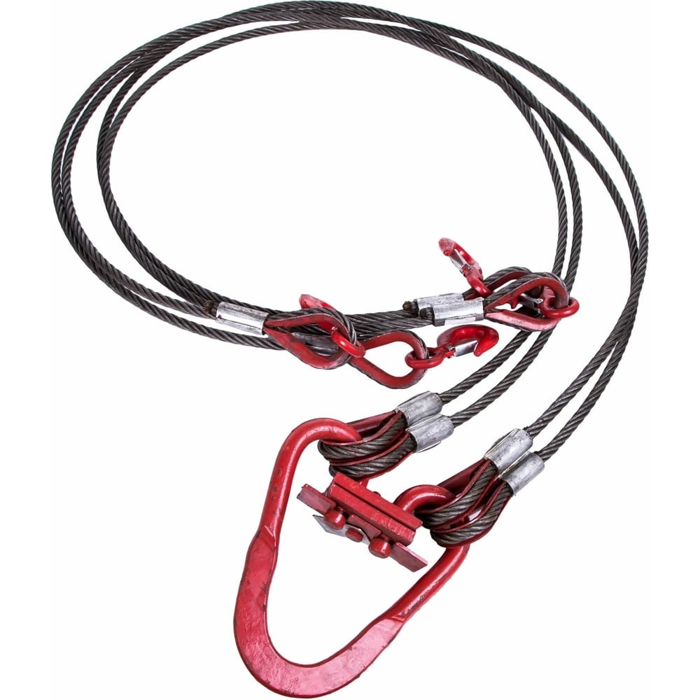 Грузовой строп Строп-Стор 4СК-6.3 т/3 м, опрессовка, канат 16,5 мм S10102 представляет собой прочную конструкцию из четырех стальных тросов с крюками на концах для надежного удержания груза. Устройство широко используется на строительных площадках, на производстве, в портах или сельском хозяйстве.