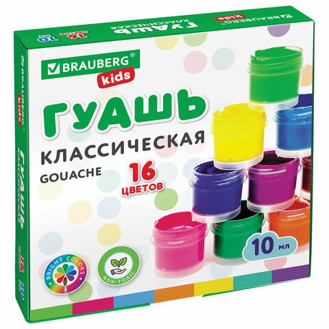 Гуашь BRAUBERG KIDS "NEW", 16 цветов по 10 мл, 192375